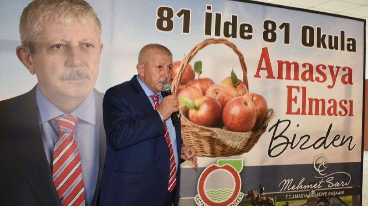 Milli Eğitim Bakanı Ziya Selçuk’un öğrencilere evlerinizde bunaldınız, okullarınızı özlediniz okula döndüğünüz ilk teneffüsü 40 dakika yapacağım twetine 81 ilde 81 okula Amasya Elması göndererek, destek verdiklerini söyleyen Belediye Başkanı Mehmet Sarı, "Bununla birlikte çeşitli vilayetlerden Belediye Başkanlarımız, kurum ve kuruluşlarımız bu twete destek verdiler. Bizde Sayın Bakanımıza destek vermek ve öğrencilerimizin özlemlerini ortak olmak amaçlı 81 ilde 81 okulumuza ve bakanlığımıza ‘Amasya Elması Bizden’ sözünü verdik. Bu manada da sözümüzün gereği olan icraatımızı bugün gerçekleştiriyoruz. Tabi bu bir çözüm değil, bu bir paylaşmaktır. Yani dertlere ortak olmaktır. Bazı hassasiyetler vardır ki sadece gönüller ile olur. Bizde gönülden 81 vilayetimiz ile tüm duygularımızı paylaşıyor ve 81 vilayetimize Amasya’mızın adını taşıyan elmalarımızı gönderiyoruz. Bu 81 vilayetimize Amasya’dan sağlık, sıhhat dilemek ve selam göndermektir” dedi.
