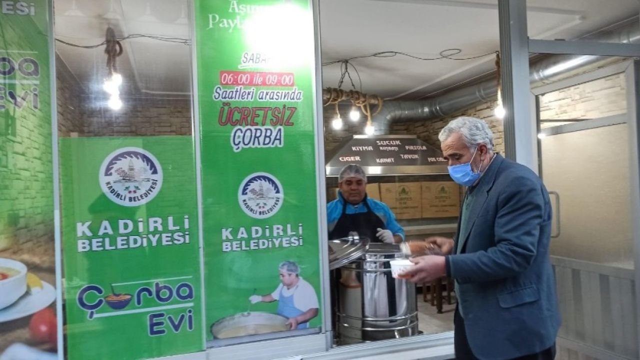 Çorba Evi ile vatandaşlarımıza hafta içi sabah 06:00 ile 09:00 saatleri arasında ücretsiz çorba ikramında bulunuyoruz diyen Başkan Tarhan “Kadirli Belediyesi olarak Aşımızı Paylaşıyoruz Sloganı ile Çorba Evini hizmete açtık. Çorba Evimiz Öğrencilerimize, sabah erken saatte iş başı yapacak olan çalışanlarımız başta olmak üzere herkese hafta içi her gün ücretsiz hizmet verecektir. Ayrıca Aş Evimizde günlük üç öğün yemek çıkarmaya devam ediyor yaşlı ve hastalarınızın evlerine de mobil araçlarımızla servis yapıyoruz.