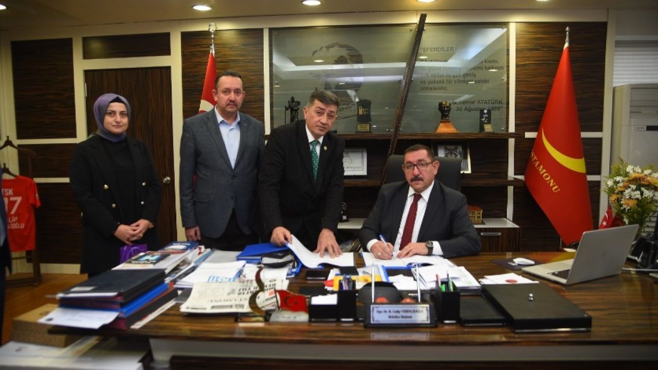 Kastamonu Belediye Başkanı Op. Dr. Rahmi Galip Vidinlioğlu, Türk Yerel Hizmet-Sen Kastamonu Şube Başkanı Hikmet Çıvgın ve yönetim kurulu üyeleri ile bir araya geldiği toplantıda altıncı dönem toplu sözleşmeyi imzaladı.