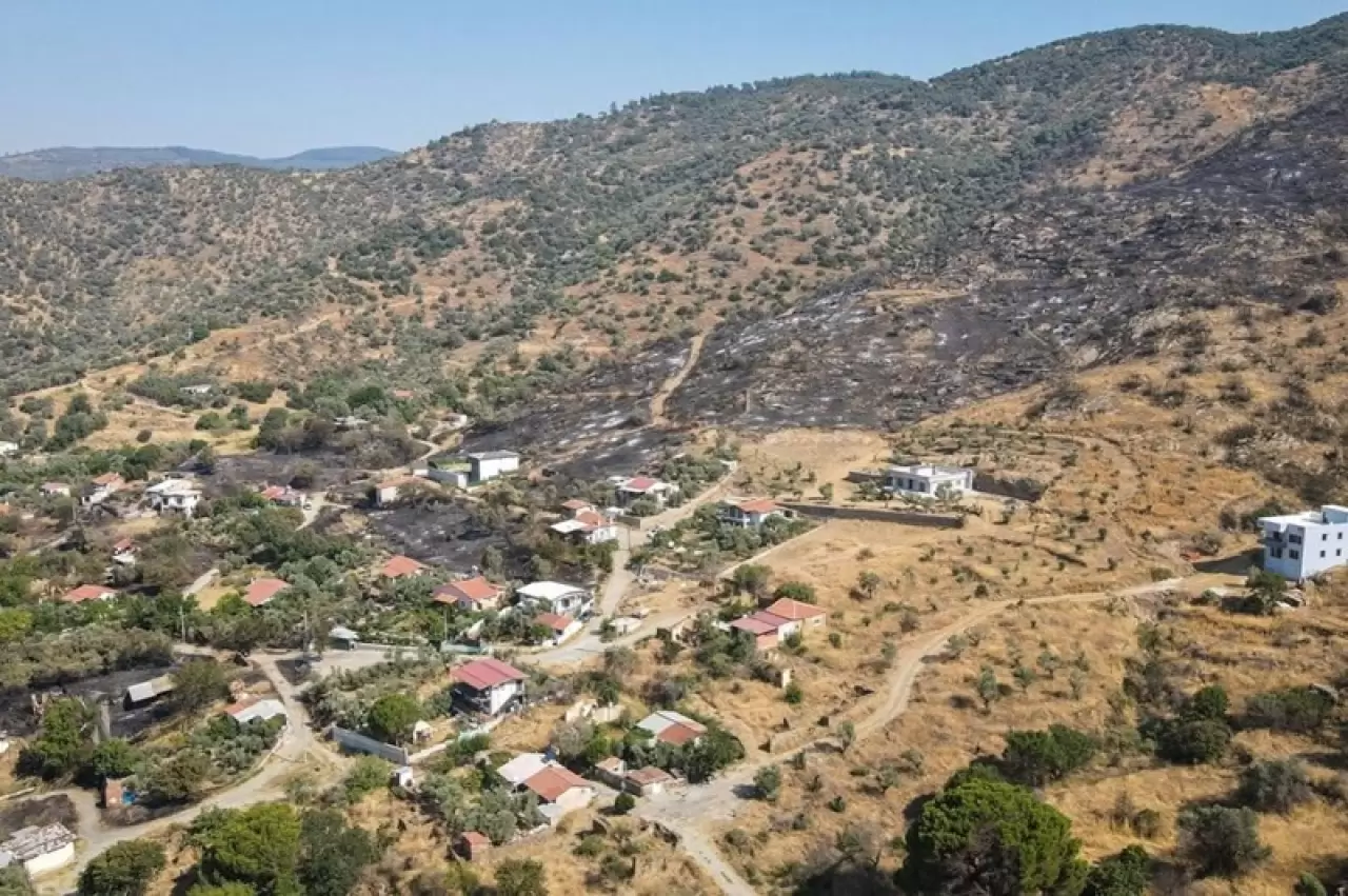 İzmir'in Bayındır ilçesi Yeşilova Mahallesi'nde dün otluk alanda çıkan ve mahalleye sıçrayan yangın, ekiplerin havadan ve karadan müdahalesiyle kontrol altına alındı.