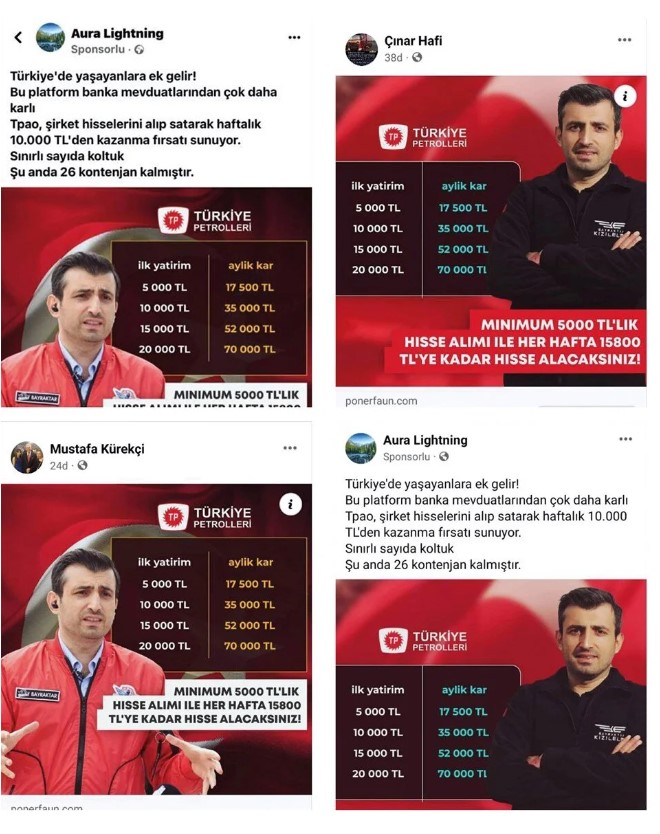 Baykar tarafından, Türkiye Petrolleri Anonim Ortaklığı'nın (TPAO) adı ve Baykar Yönetim Kurulu Başkanı Selçuk Bayraktar'ın fotoğrafları kullanılarak "yatırım fırsatı", "ek gelir" gibi başlıklarla yayınlanan ilanların açık bir dolandırıcılık girişimi olduğu bildirildi.