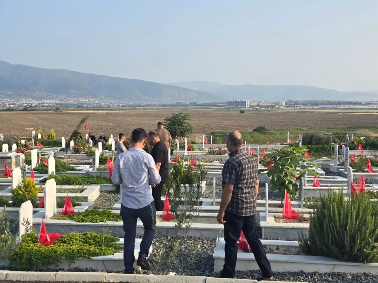 Kahramanmaraş merkezli 6 Şubat 2023’teki depremlerden en çok etkilenen illerden Hatay'da Kurban Bayramı'nın ilk gününde, Antakya ilçesi Narlıca Mahallesi'ndeki deprem şehitliği yakınlarını kaybedenlerle dolup taştı.