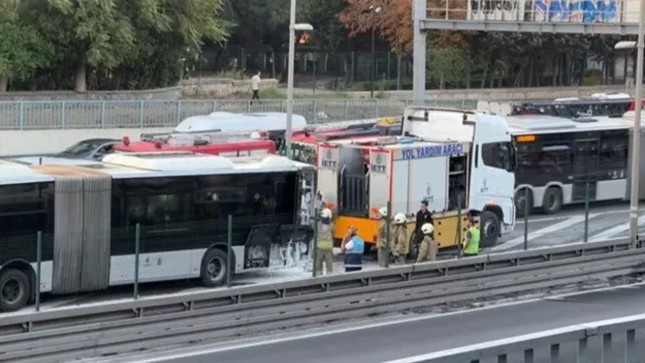 Bayrampaşa-Maltepe metrobüs durağı yakınında Zincirlikuyu istikametinde ilerleyen metrobüsün motor kısmında yangın çıktı.
