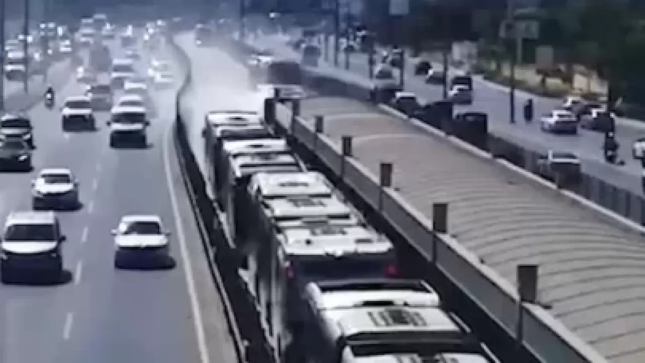 Yangın nedeniyle metrobüs seferleri kısa süre aksadı.