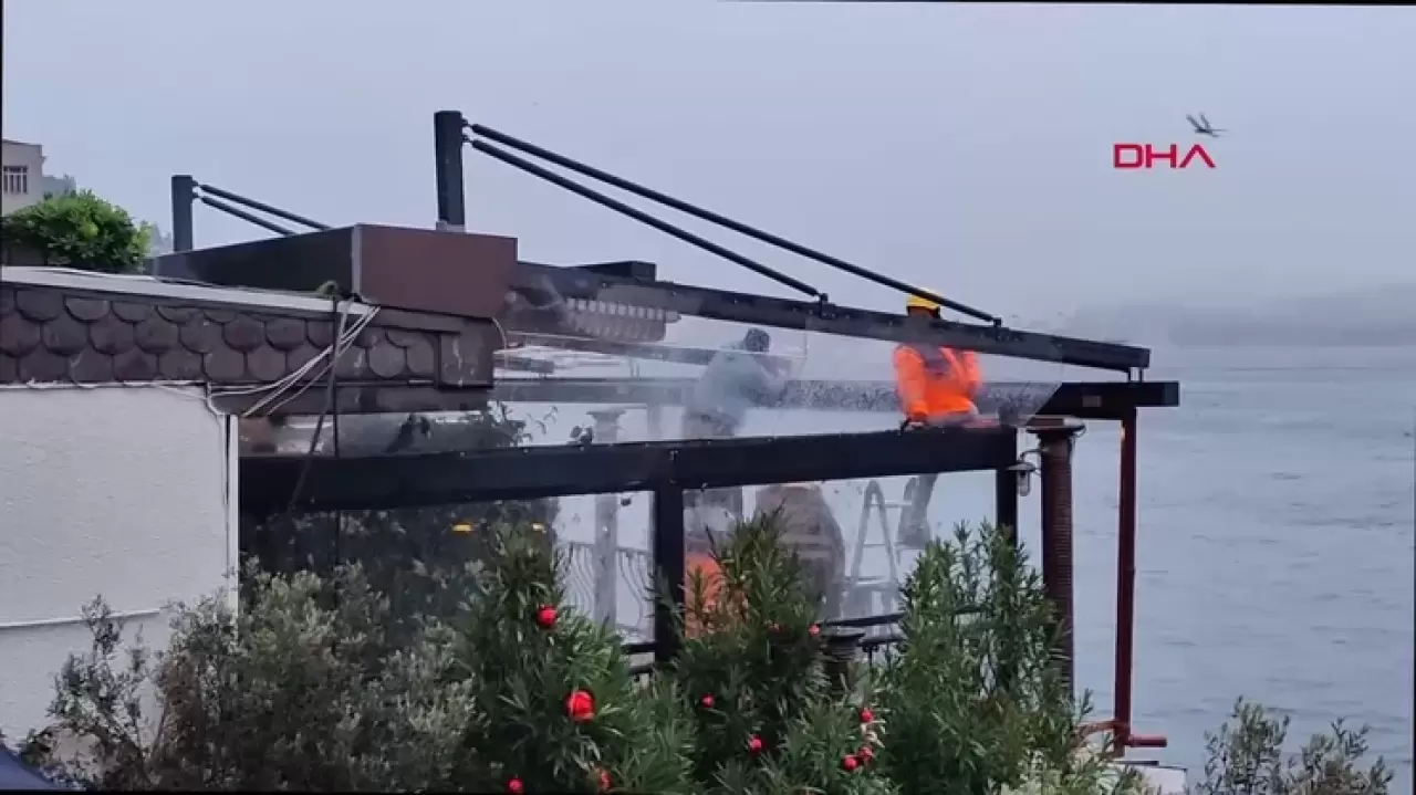 Bebek Otel'in kış bahçesinin yıkımı yapılıyor.