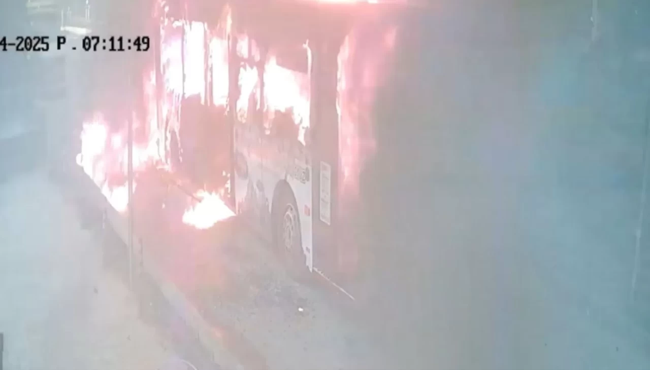 Alevleri fark eden sürücü, hızla aracı durdurarak içerideki yaklaşık 25'e yakın yolcuları tahliye etti. Büyük panik yaşayan yolcular, otobüsten koşarak uzaklaştı. O anlar güvenlik kamerası tarafından anbean kaydedildi.