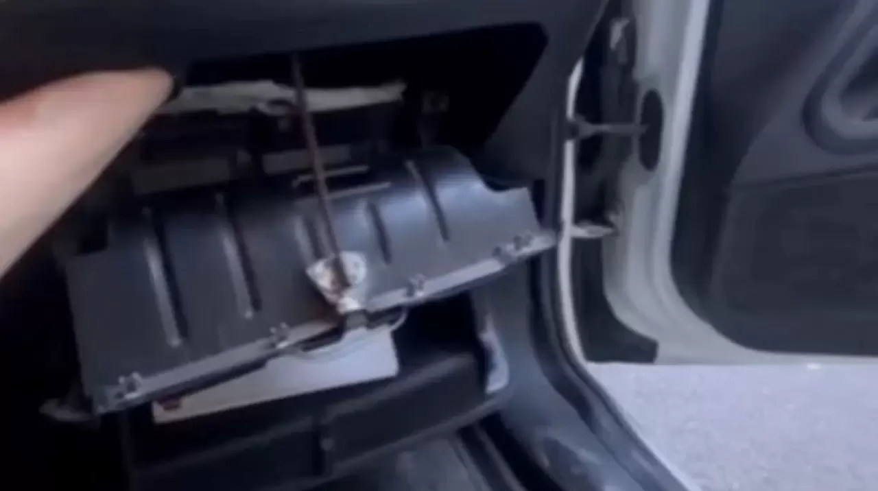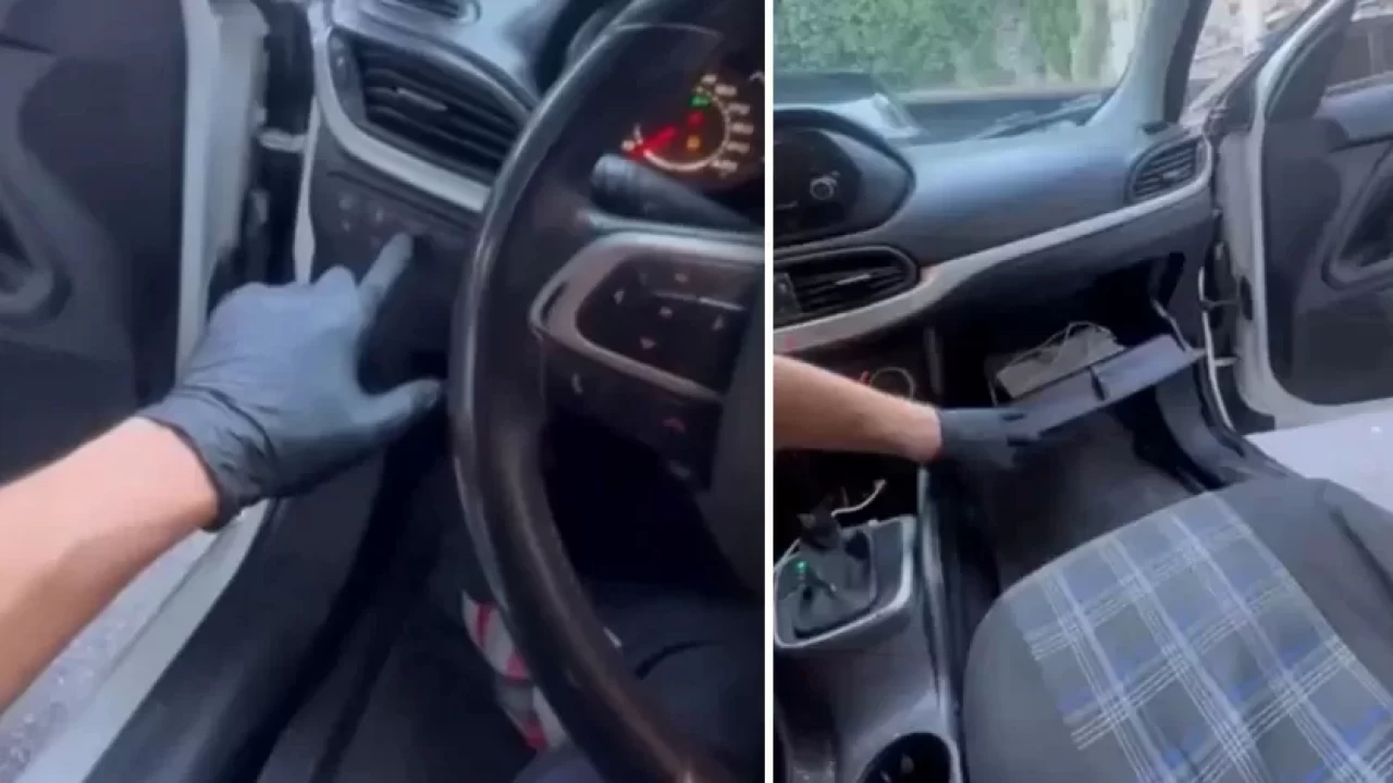 Çalışma yapan polis sis farı düğmesine basıp, orta bölümdeki kolçağa mıknatıs değdirince gizli bölmeyi açtı.