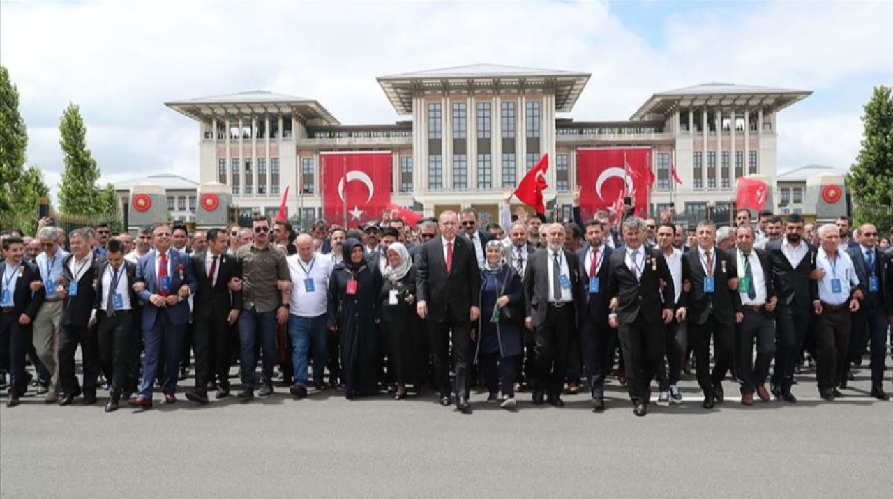 Erdoğan, 15 Temmuz Demokrasi ve Milli Birlik Günü dolayısıyla düzenlenen program kapsamında Cumhurbaşkanlığı Külliyesi önünde kendisini bekleyen 15 Temmuz şehitlerinin yakınları ve gazilerle bir süre sohbet etti.