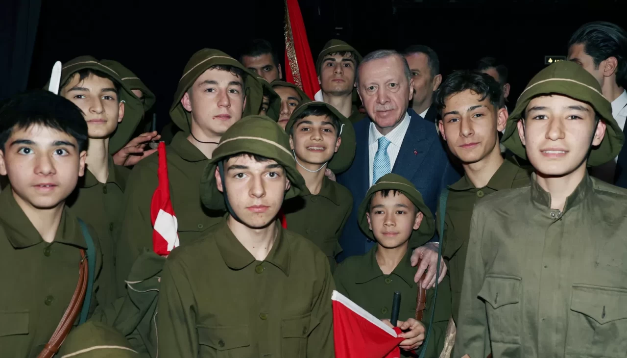 Erdoğan, Beştepe Millet Kongre Merkezi'nde, senaryo ve tarih danışmanlığını Milli Eğitim Bakanı Yusuf Tekin'in yaptığı tiyatro eserinin gösterimine katıldı.