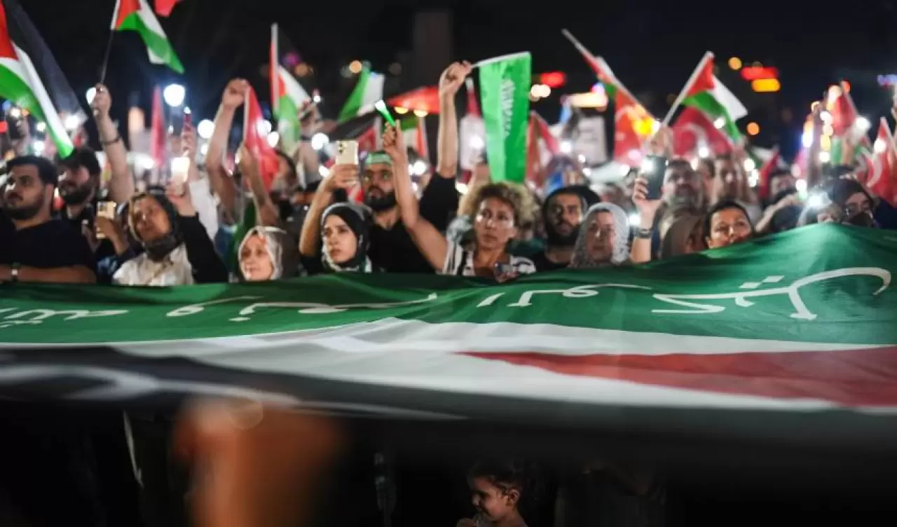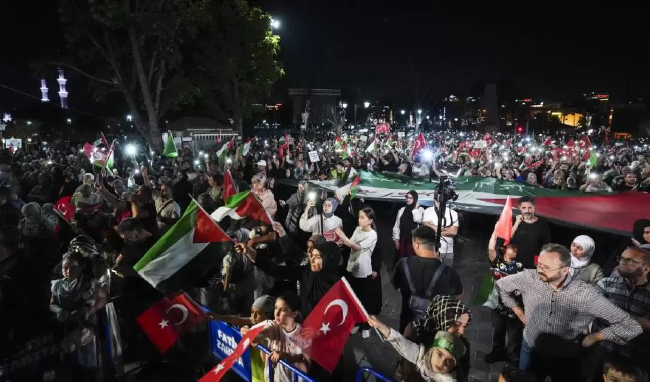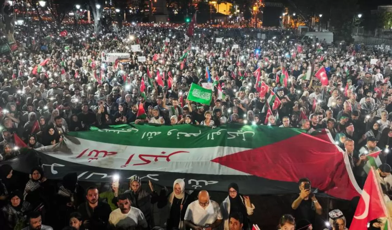 Binlerce kişinin katıldığı etkinlik sırasında "Katil İsrail, Filistin'den defol" ve "Gazzeli çocuklar bizi bekliyor" sloganları atıldı.