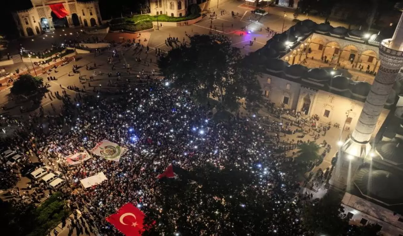 Etkinlikte konuşan Filistin'e Destek Platformu Dönem Başkanı Mehmet Güney, tarihi bir gece olduğunu ifade ederek, Beyazıt Meydanı'ndan Ayasofya'ya kadar tekbirler ve dualarla yürüdüklerini söyledi.