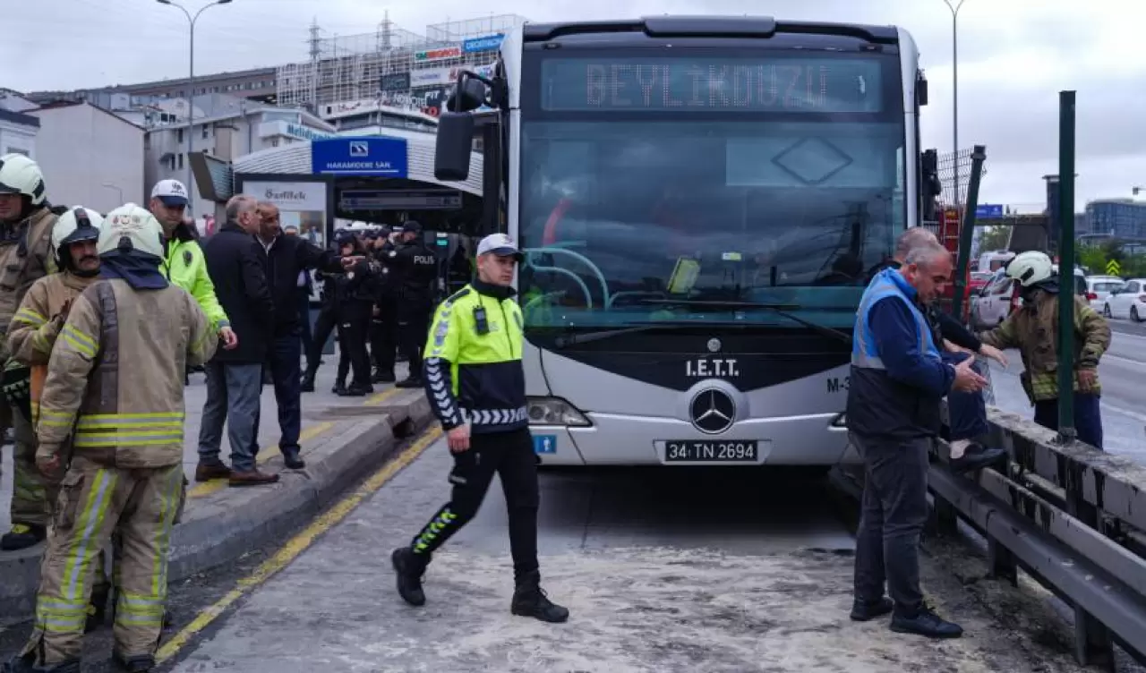 "Saadetdere Metrobüs Durağı'na kadar bir sorun yaşamadım. Metrobüste yolcu yoğunluğu vardı. Aynı gün 16.55 sıralarında Saadetdere Durağı'ndan, Haramidere Durağı'na doğru gitmekteydim. İki durak arası rampa aşağı olduğu için temkinli şekilde hareket etmekteydim. Bu sebeple hızımı yavaş tutuyordum. Maksimum hızımın 40 kilometre/saat olduğunu düşünmekteyim. Durağa gelmeden yaklaşık 100 metre önce frene basmaya başladım. Havanın yağışlı ve metrobüs durağı yolunun kaygan olması nedeniyle frene basmama rağmen araç yavaşladı ancak kızaklayıp durmadı."
