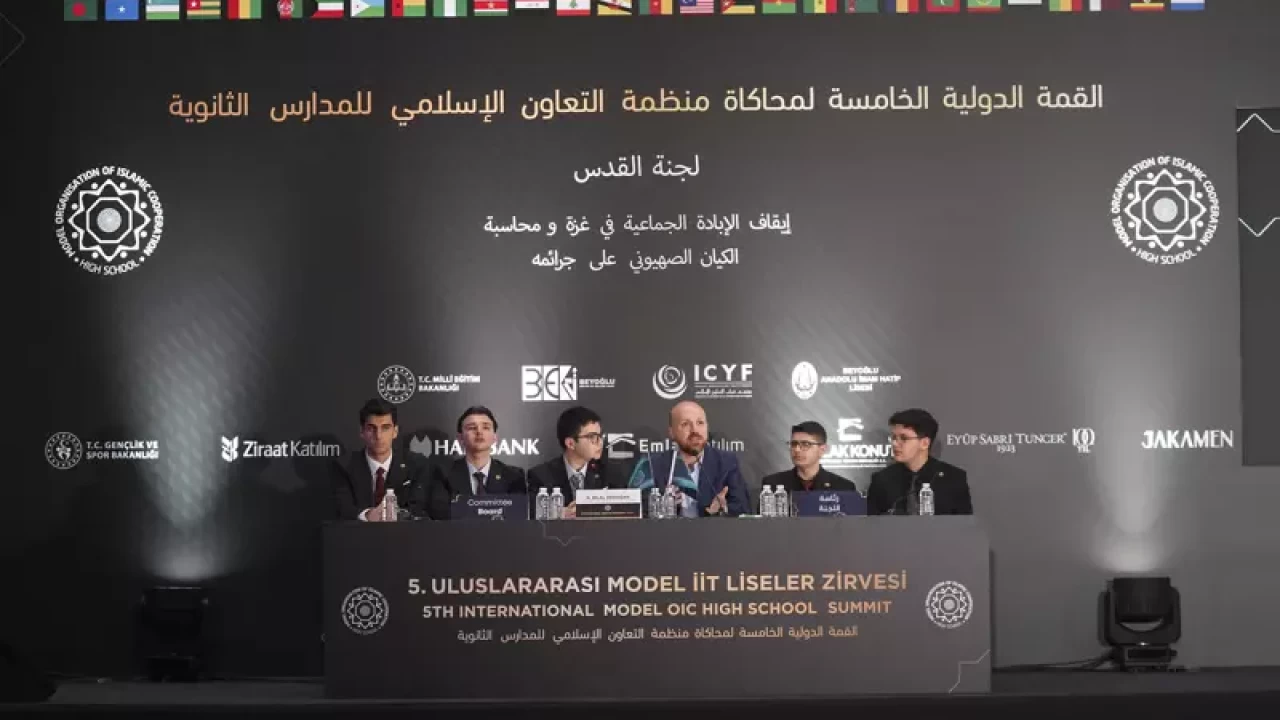 İslam İşbirliği Gençlik Forumu (ICYF), Beyoğlu Anadolu İmam Hatip Lisesi, Beyoğlu Eğitim ve Kültür Vakfı işbirliğiyle Şişli'deki Grand Cevahir Otel ve Kongre Merkezi'nde "Filistin İçin Adalet: Zulme Karşı Direniş" ana temasıyla düzenlenen "5. Uluslararası Model İslam İşbirliği Teşkilatı Liseler Zirvesi" ikinci gününde devam ediyor.