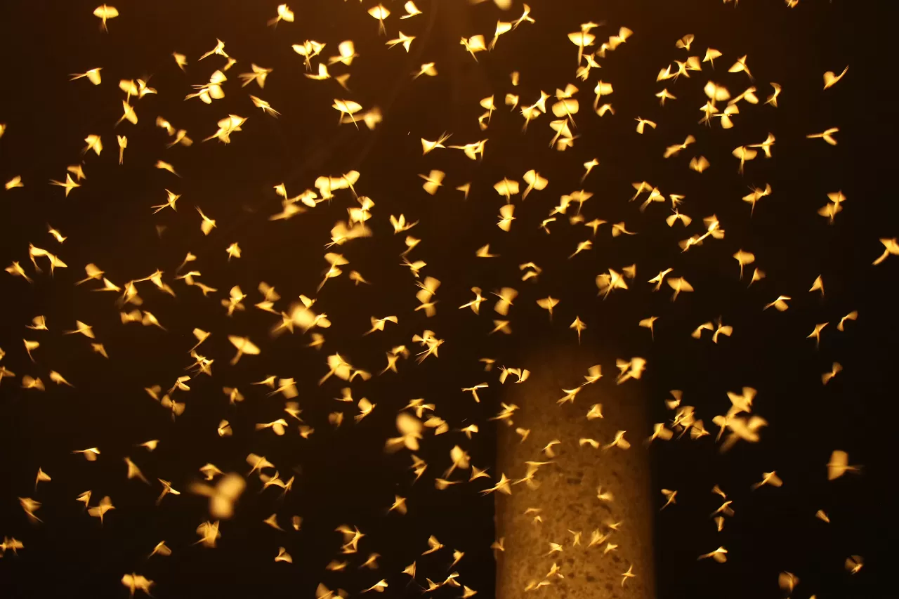 Ömürlerinin yüzde 99'unu larva halinde suda geçiren bir gün sinekleri erginleşme sürecini tamamlayarak Sakarya Nehri'nden çıkmaya başladı. Adapazarı ilçesindeki Sakarya Köprüsü üzerinde bulunan aydınlatma direklerinin çevresinde toplanan binlerce sinek, çiftleşerek ölmeye başladı. Yüz binlerce beyaz kelebeğin her yıl tekrarlanan ve adeta kar yağışını anımsatan "ölüm uçuşu" görsel şölen oluştururken haberi duyan vatandaşlar ise tarihi köprüye akın etti. Bazı vatandaşlar, sinekleri eline alırken bazı vatandaşlar ise aydınlatma direkleri çevresinde uçuşanları cep telefonu kamerasıyla kayda aldı. İlk defa sinekleri görmeye geldiğini belirten Hatice Kaya, “Normalde Temmuz ve Ağustos aylarında geliyorlarmış daha erken gelmişler. Ben de haberini alır almaz görmeye geldim. Çok şaşkınım bir gün yaşıyorlarmış ve yerler kelebek dolu çok garip geldi. Ekranlarda görüyorduk canlısını görmek daha da ayrı bir duygu. İlerleyen zamanlarda da bu sineklerin artacağı söyleniyor şuan daha az ve az olmasına rağmen görüntü çok güzel” dedi.