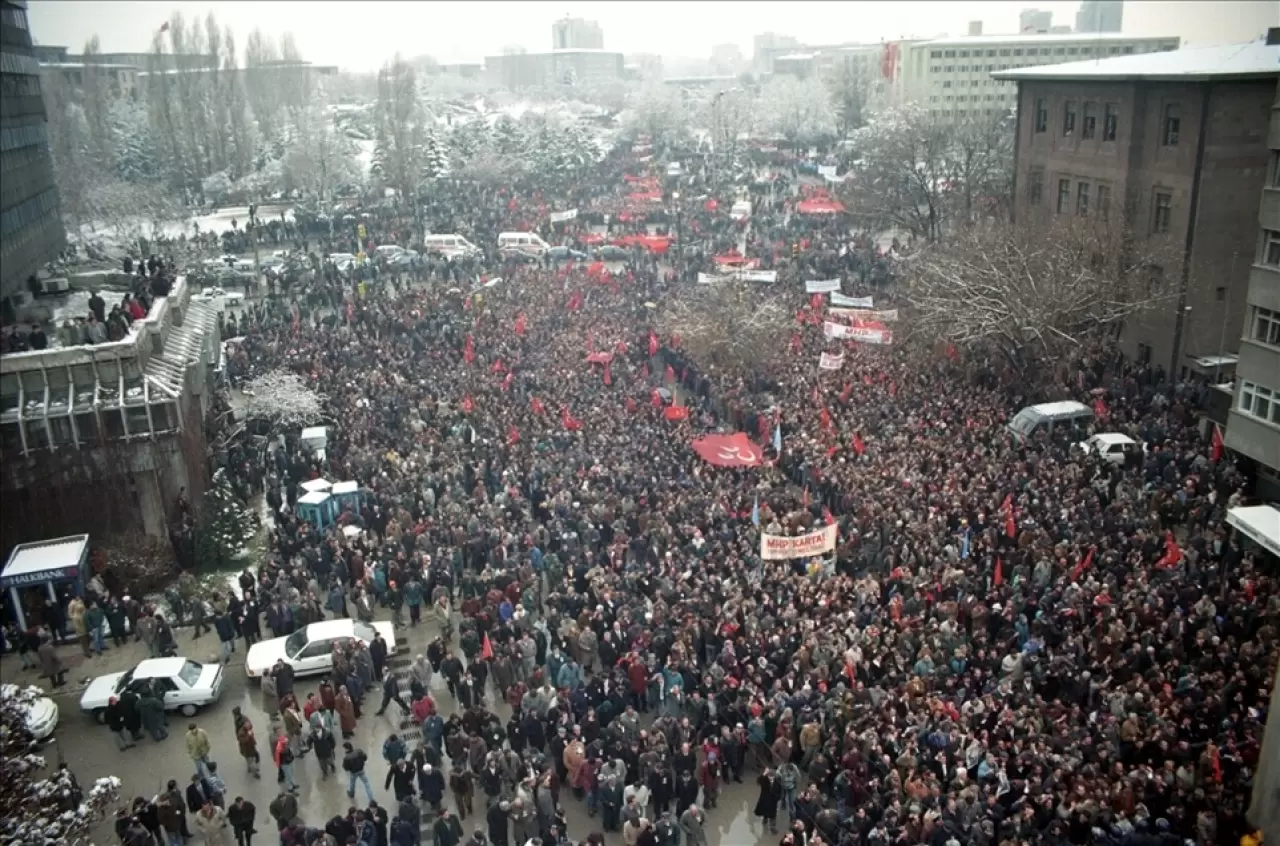 Ankara o gün, tarihinin en hüzünlü ve en kalabalık günlerinden birini yaşadı. Karlı havaya rağmen yüz binlerce Ülkücü, Beştepe’deki anıt mezara giden yolda dev bir kor oluşturdu.
