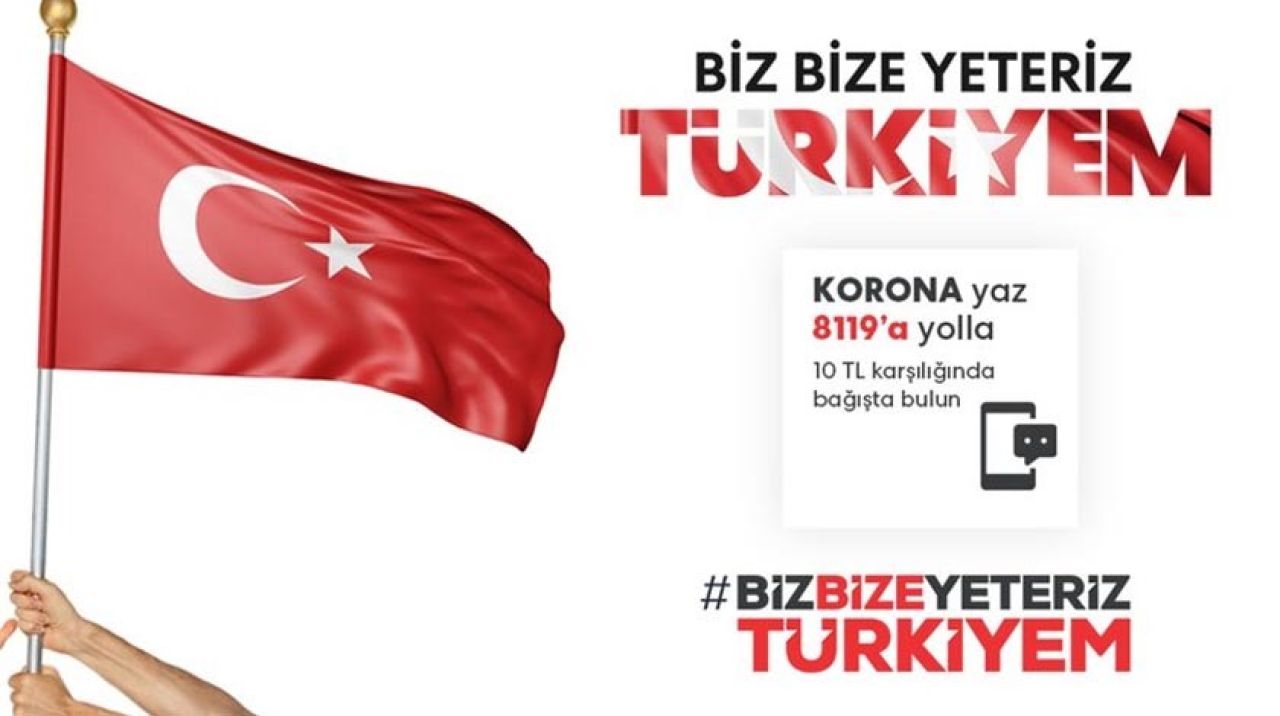 Cumhurbaşkanı Recep Tayyip Erdoğan’ın 7 maaşını bağışlayarak açılışını yaptığı Biz Bizi Yeteriz Türkiyem koronavirüs kampanyasına tüm operatörlerden katılmak mümkün. Bağış yapmak isteyen yardımseverler, mesaj bölümüne büyük harflerle KORONA yazarak 8119’a attıkları mesaj ile katılım sağlamış olacaklar. Kampanyaya atılan her bir mesaj 10 TL olarak ücretlendirilecek.