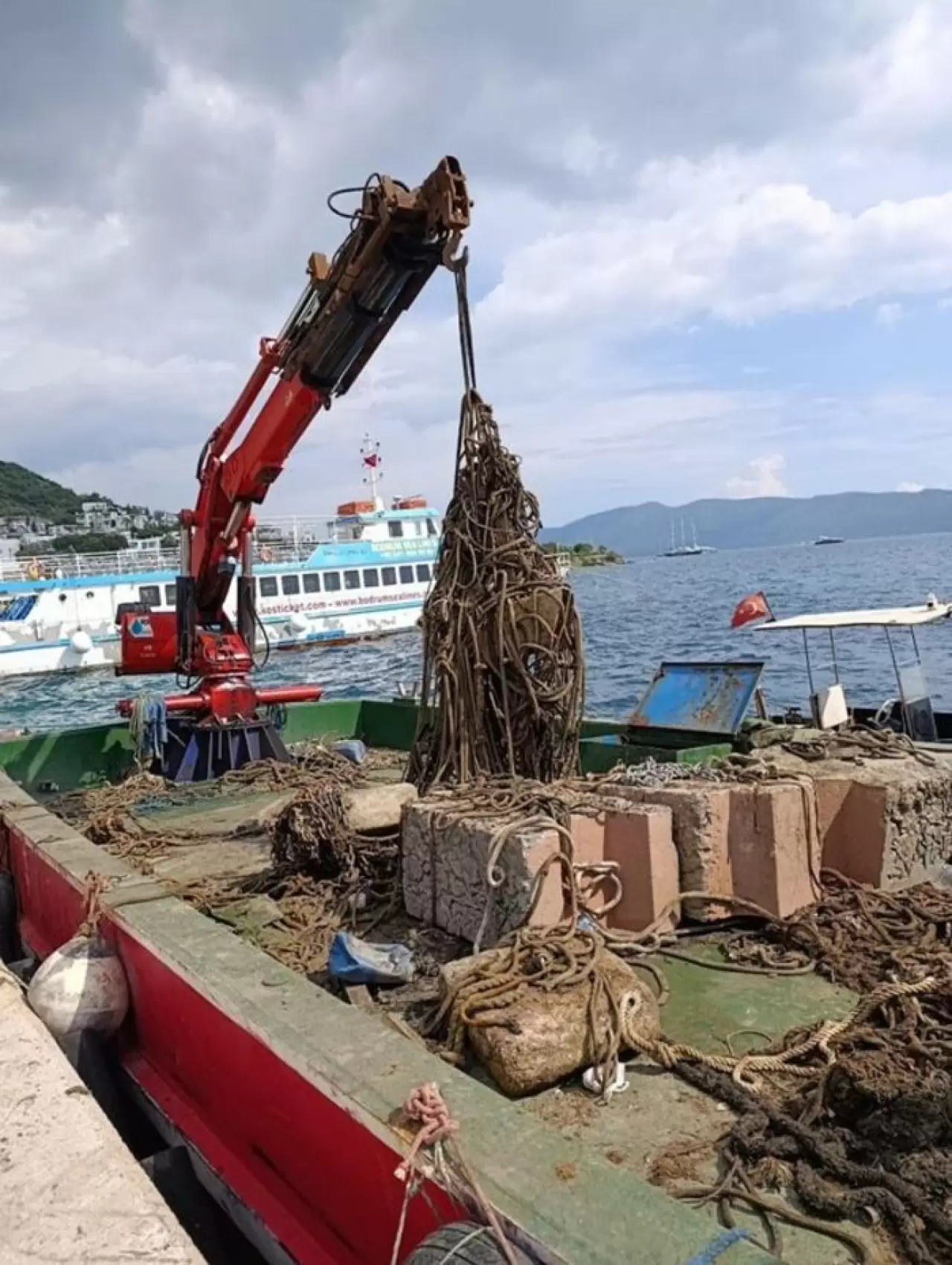 Turizm sezonunun en yoğun bölgelerinden biri olan Gümbet Koyu’nda yapılan deniz dibi temizliğinde yasa dışı yerleştirilmiş tonozlar, hurda metaller ve molozlar gün yüzüne çıkarıldı. Toplamda 130 tonluk atık karaya taşındı.