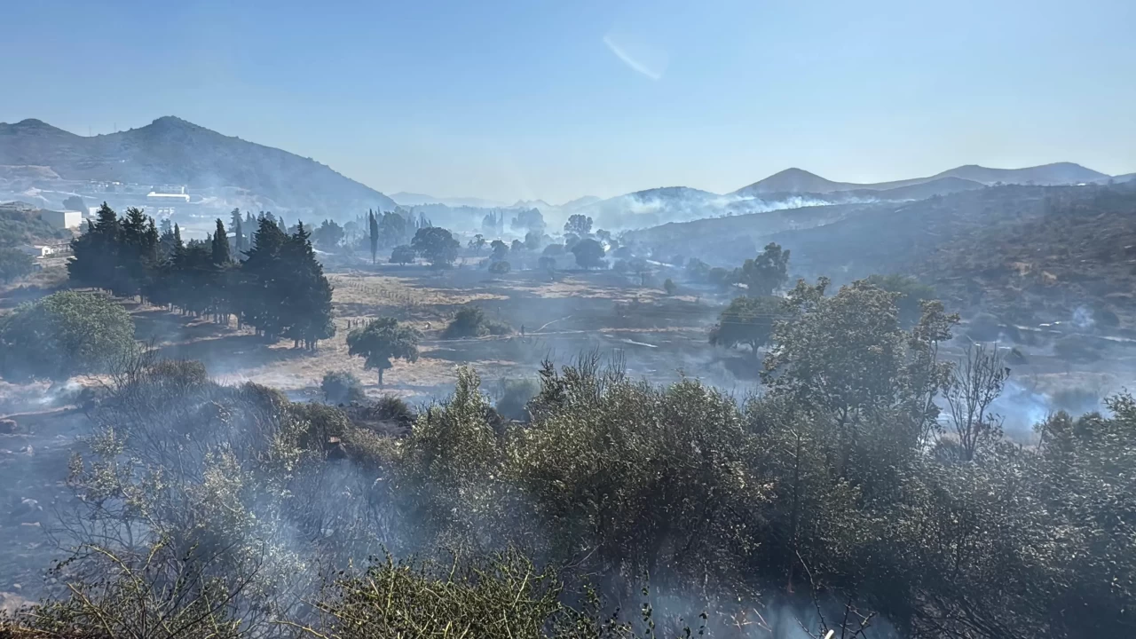 Muğla’nın Bodrum ilçesinde makilik alanda başlayan yangın, rüzgarın da etkisiyle kısa sürede büyüyerek tarım arazilerine sıçradı. Yangını kontrol altına almak için ekipler havadan ve karadan yoğun çaba sarf ediyor.