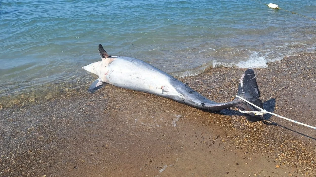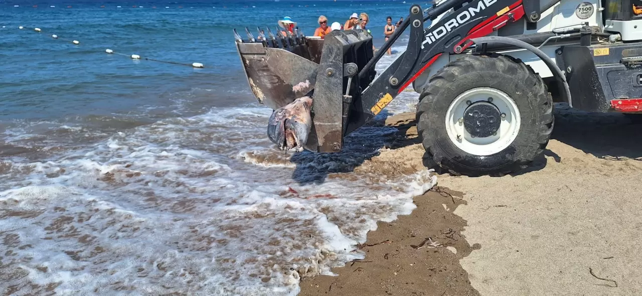 Muğla’nın Bodrum ilçesinde karaya vuran ölü yunus yerli yabancı turistlere şok etti. Yunus belediye ekiplerince bölgeden kaldırıldı.