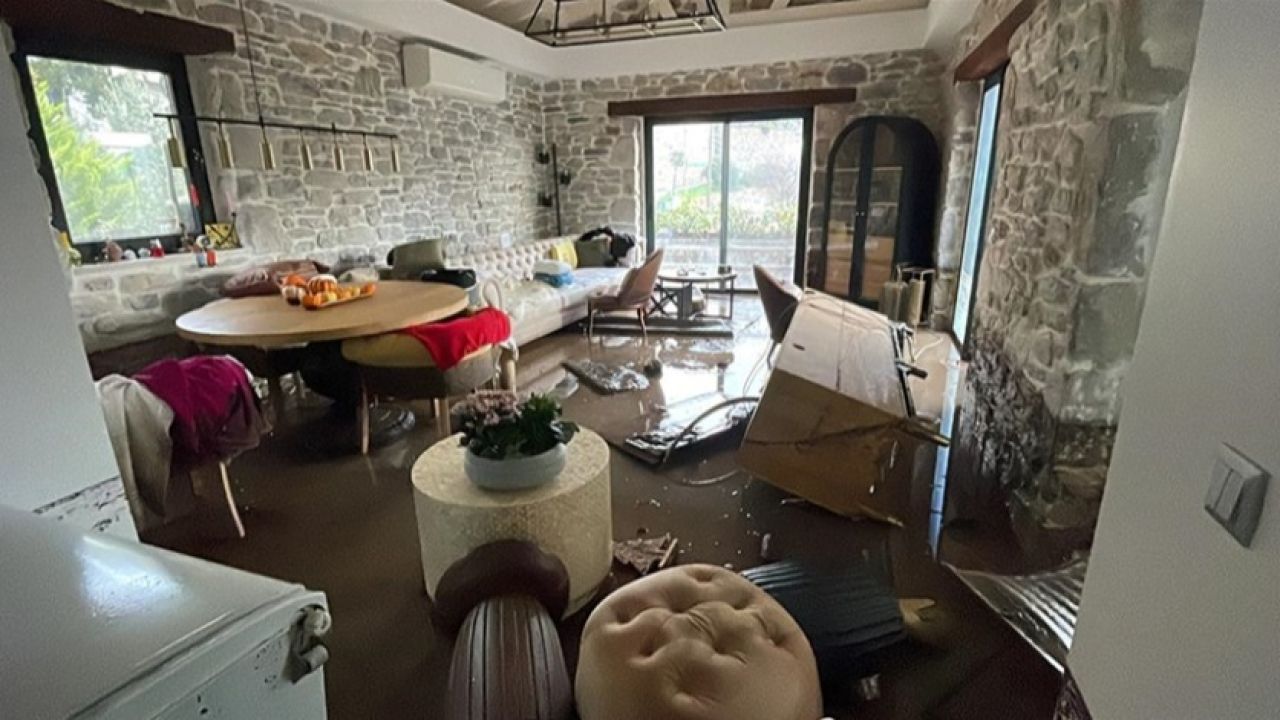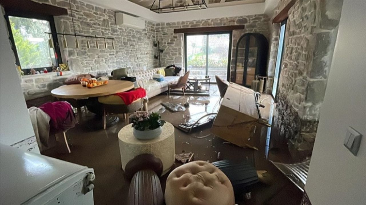 Muğla'nın Bodrum ilçesinde, sağanağın ardından çok sayıda ev sular altında kaldı, kara yolu ulaşıma kapandı.