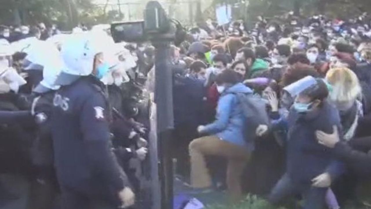 Beşiktaş Bebek'te bulunan üniversiteye yakın bir noktada bir araya gelen gruplar, üniversitenin giriş kapısına kadar yürüdü.