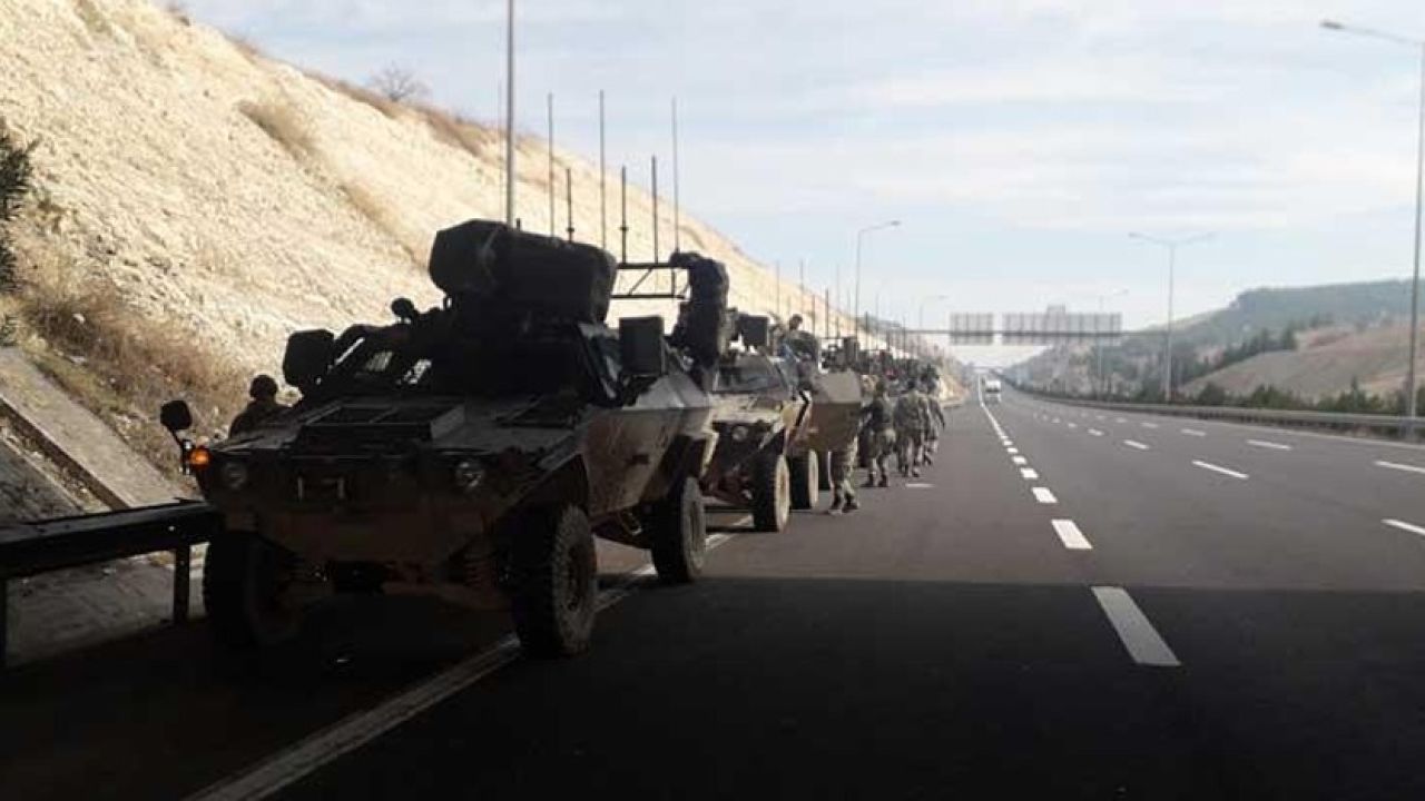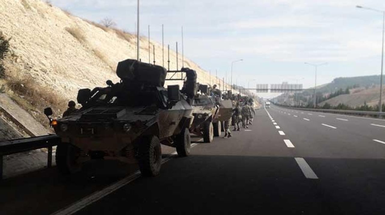 Mardin’den yola çıkan ve aralarında sinyal kesici zırhlılar, kirpiler ve mühimmat taşıyan araçların bulunduğu yaklaşık 30 araçlık konvoy, Şanlıurfa üzerinden Fırat Kalkanı ve Zeytin Dalı harekatlarının gerçekleştirildiği Fırat’ın batısına gitti. Komando birliklerinin de yer aldığı askeri konvoy, otoban üzerinden Gaziantep istikametine gitti.İHA