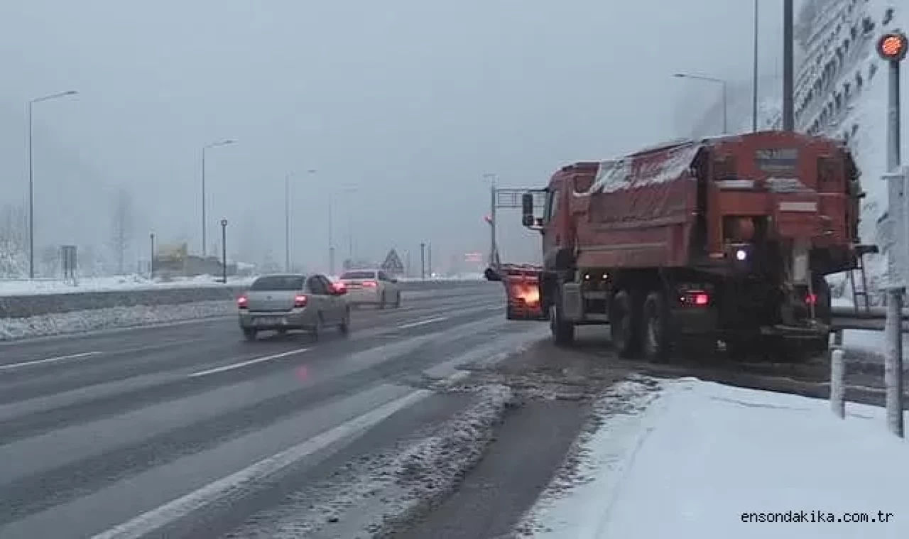 Ankara ile İstanbul arasında ulaşımı sağlayan güzergahlardan D-100 kara yolunun Bolu Dağı kesiminde etkili olan kar yağışının ardından karayolları ekipleri, kar küreme ve tuzlama çalışması gerçekleştirdi.