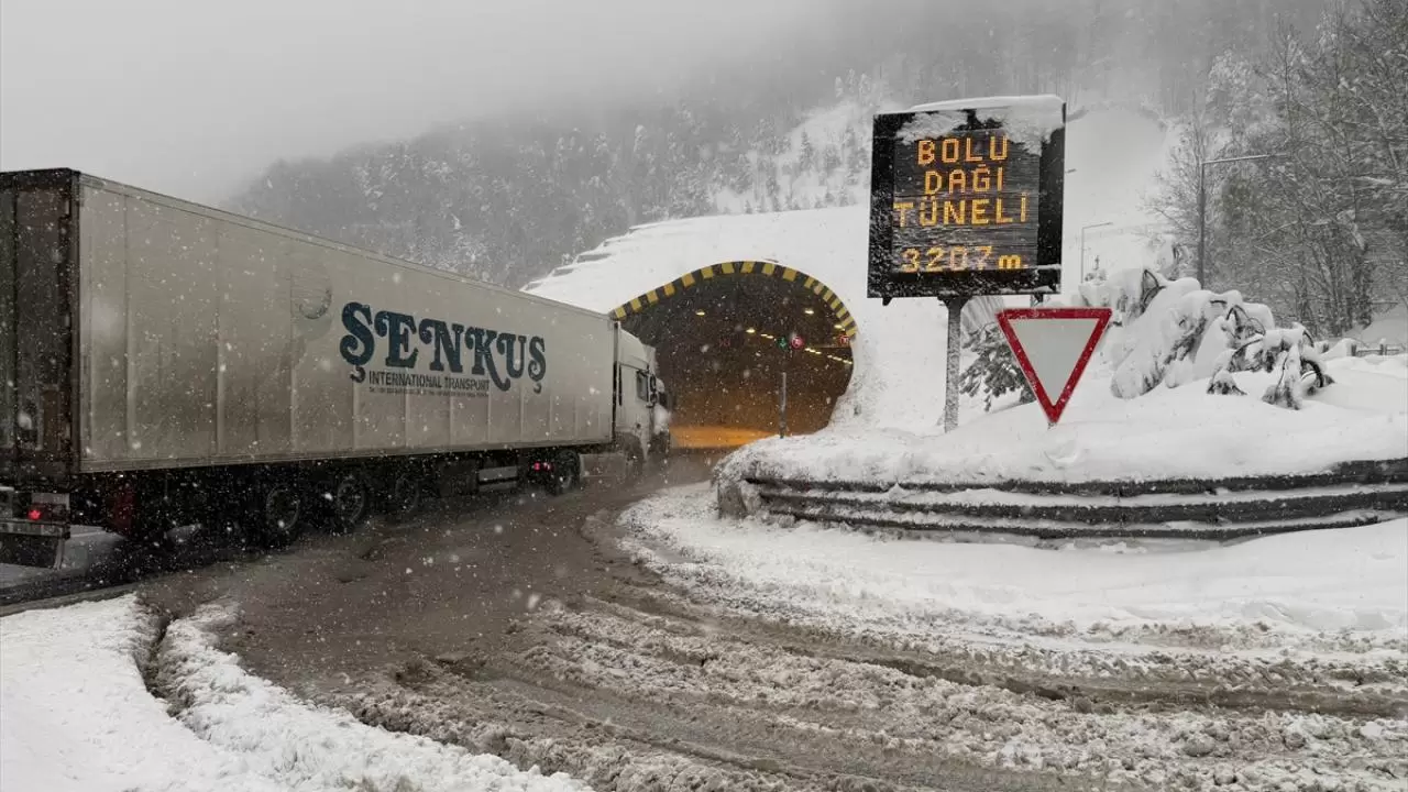Yoğun kar yağışı nedeniyle Düzce'nin Kaynaşlı ilçesinde oluşturulan polis noktasından itibaren ağır tonajlı araçların ulaşımına kapatılan Ankara istikameti, çalışmaların tamamlanmasıyla araçların geçişine tekrar açıldı.
