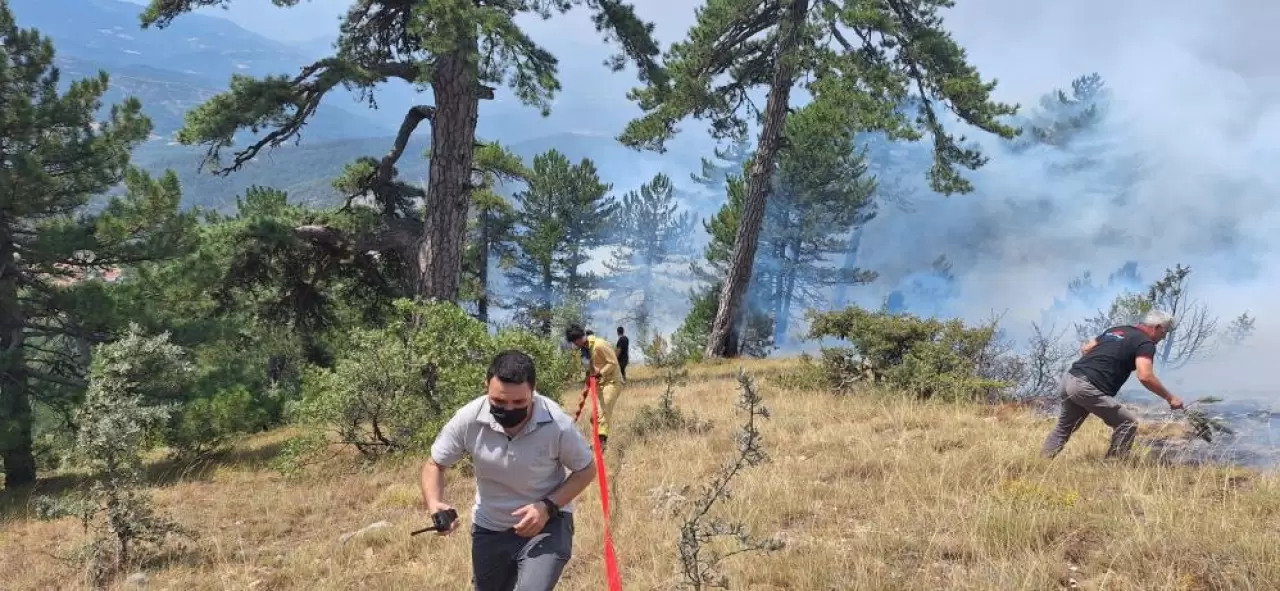 Yangını görenlerin ihbarı üzerine bölgeye itfaiye, Orman Bölge Müdürlüğü'ne bağlı arazözler, helikopter ile çok sayıda personel sevk edildi.