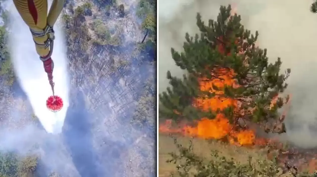 Yangın bölgesine giden ekipler, havadan ve karadan müdahaleye başladı. Köyde yaşayan vatandaşlar da yangın söndürme çalışmalarına destek veriyor.