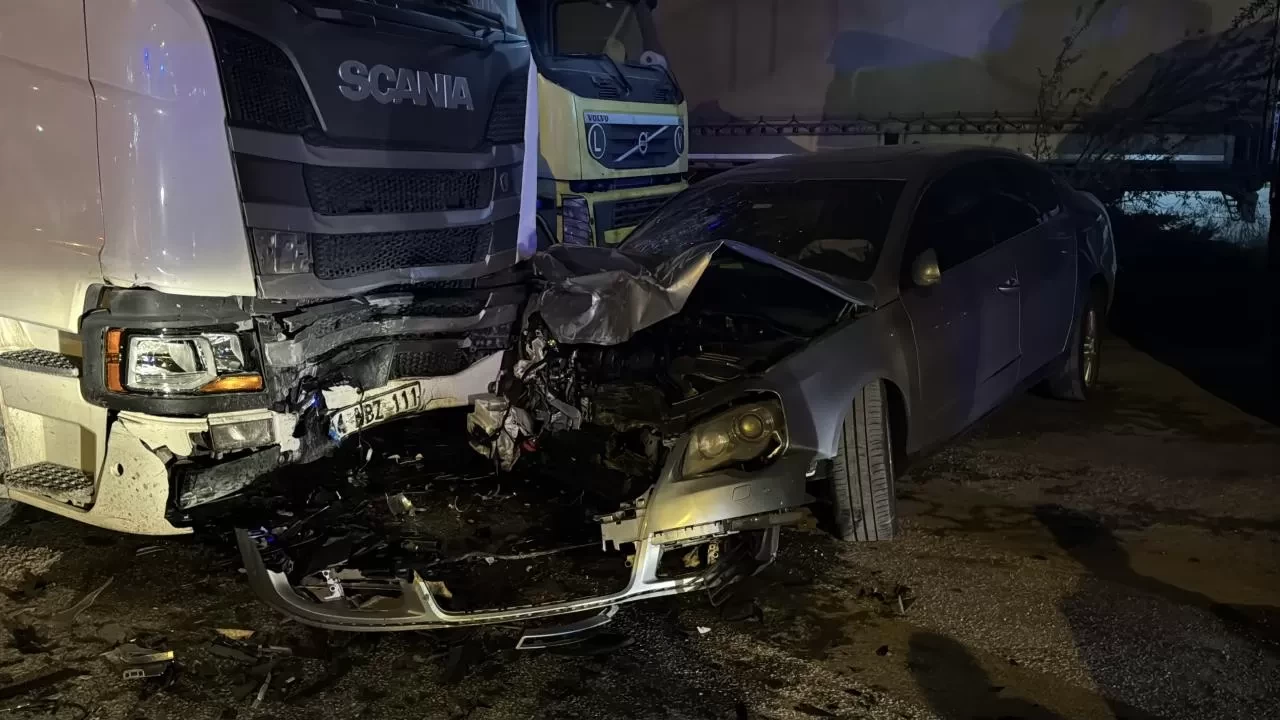 Otomobil, yol kenarındaki tır ile tıra çarparak durabildi.