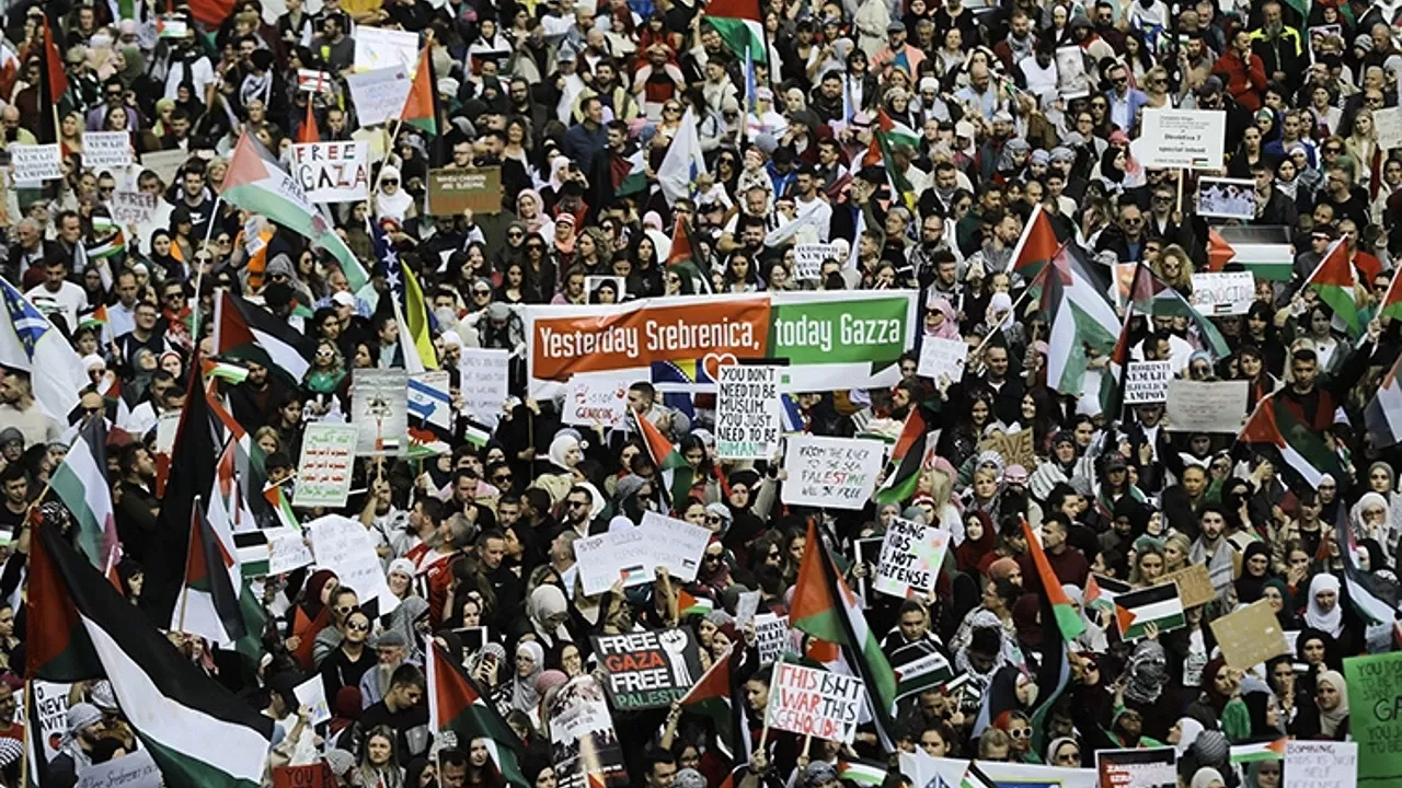 "Gazze'de soykırımı durdurun" ve "Dün Srebrenitsa bugün Gazze" yazılı dövizler taşıyan göstericiler, İsrail'in Gazze'ye yönelik saldırılarının son bulması çağrısında bulundu.