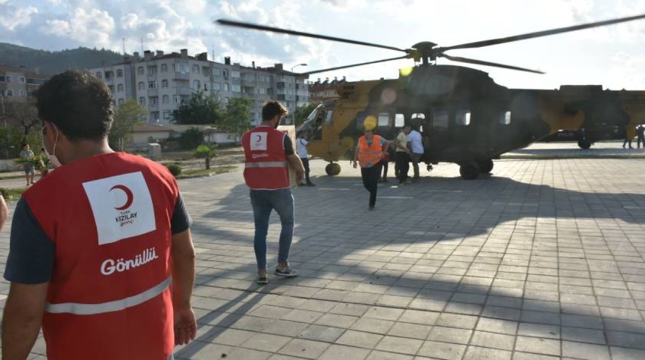 Bozkurt'a komşu ilçe Abana'da sahil kenarında oluşturulan pistte TSK'ye ve Emniyet Genel Müdürlüğüne ait helikopterler hazır bekletiliyor.