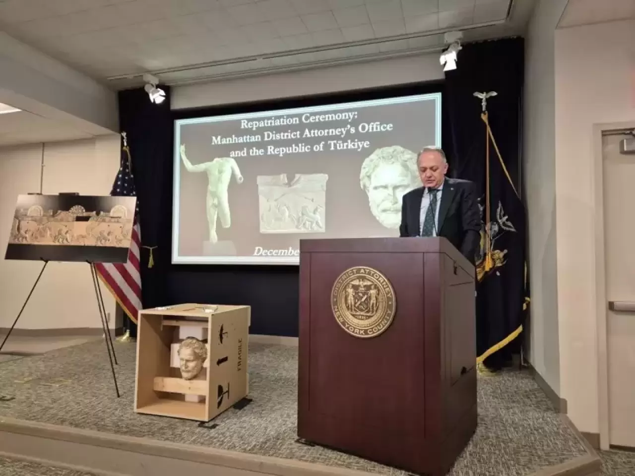Bakanlık, süreç boyunca Manhattan Bölge Savcılığı ve Amerikan İç Güvenlik Birimi ile koordineli bir çalışma yürüttü ve heykelin teslimi için gerekli tüm prosedürleri tamamladı.