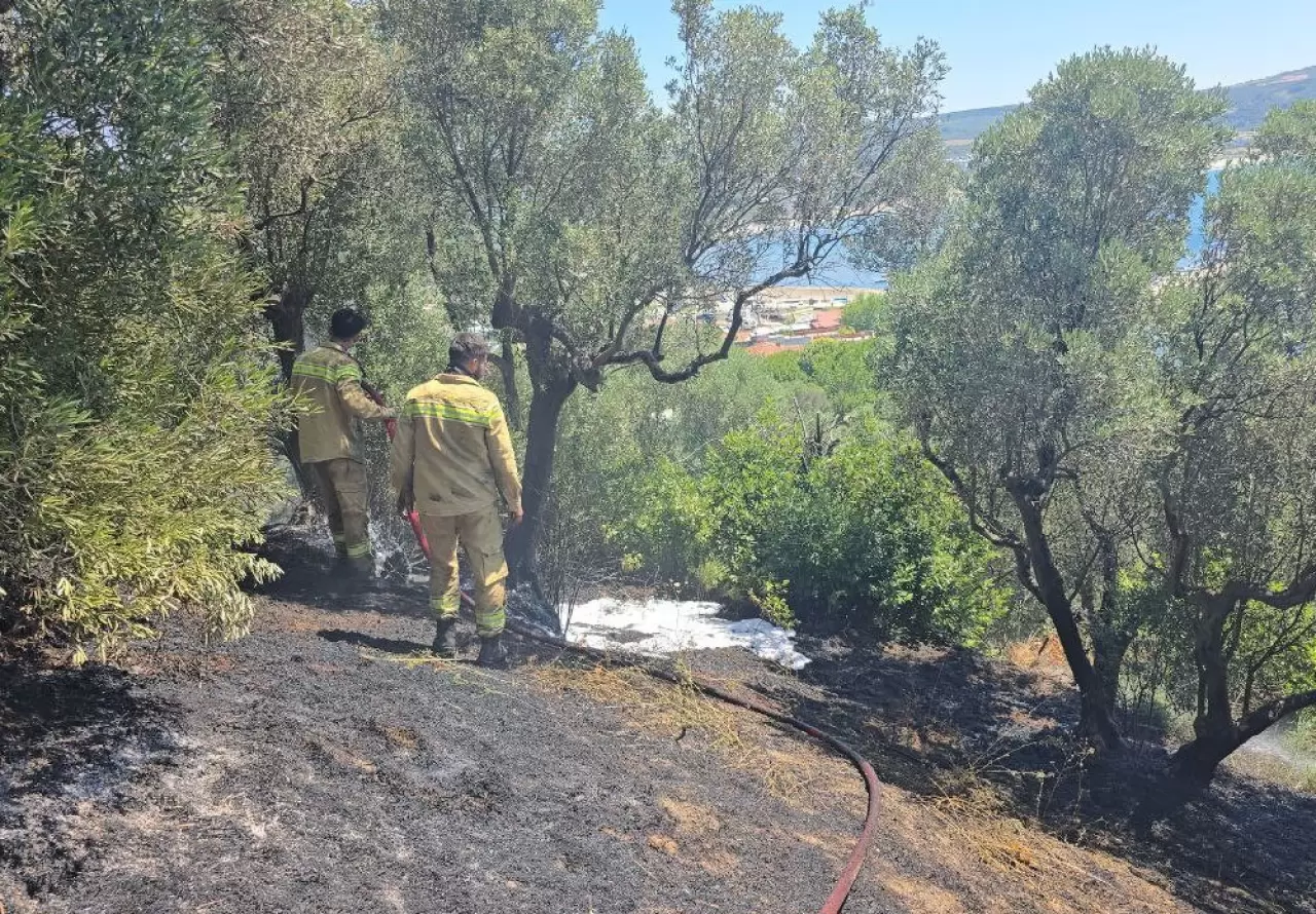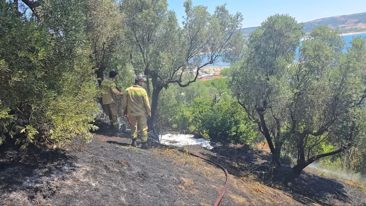Bursa'nın Mudanya ilçesi Göktepe mevkiinde çıkan yangında yaklaşık 8 dönümlük zeytinlik ve çalılık alan zarar gördü. Alevlerin buğday tarlasına ulaşması son anda engellendi.