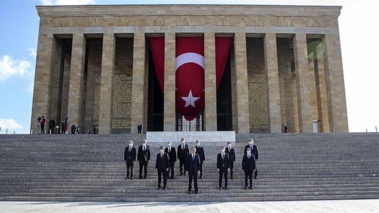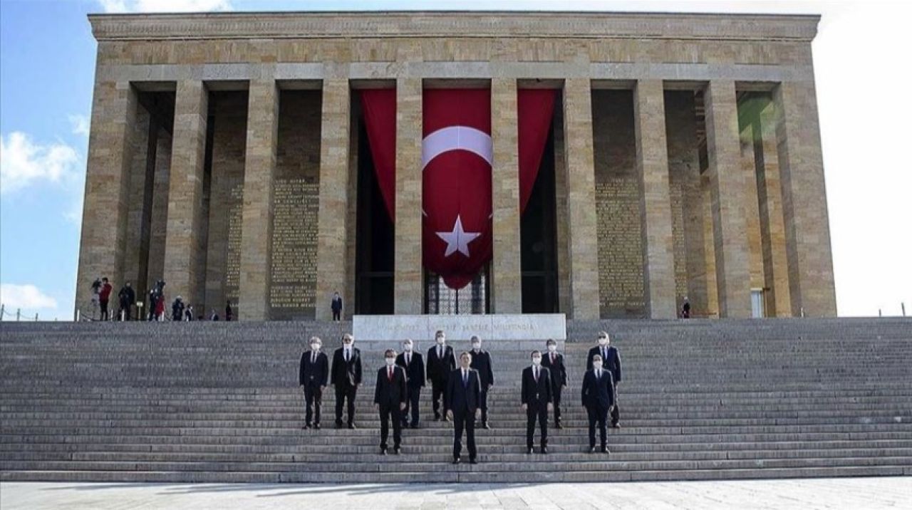 Bakan Selçuk'un, çelengi mozoleye bırakmasının ardından saygı duruşunda bulunuldu ardından İstiklal Marşı okundu.
