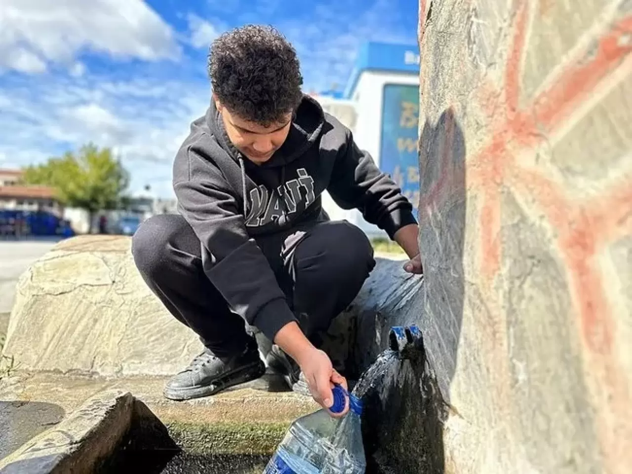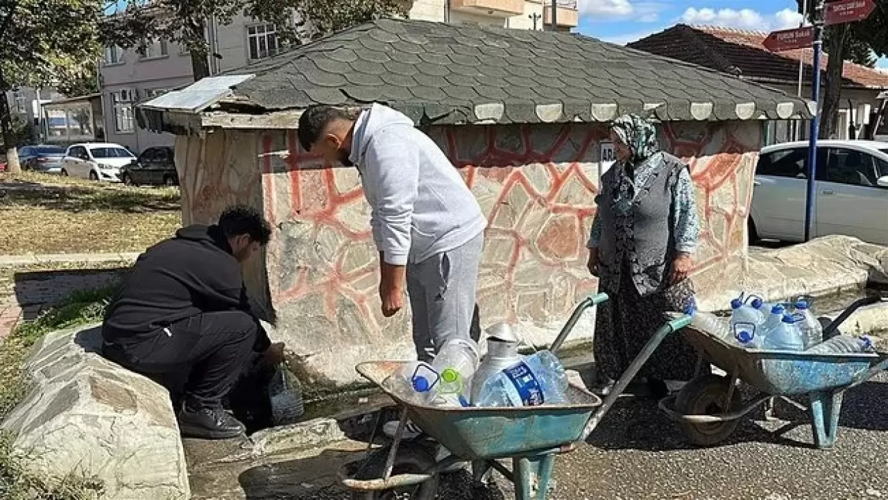 2 gündür su kesintisinin yaşandığı Yıldırım Beyazıt Mahallesi'nde vatandaşlar, çeşme önlerinde sıraya girerek pet şişeler ve bidonları doldurup evlerine taşımaya başladı.