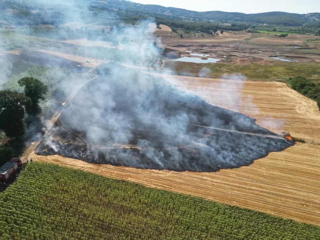 Babasultan Mahallesi'ndeki tarım arazisinde henüz belirlenemeyen nedenle yangın çıktı.
