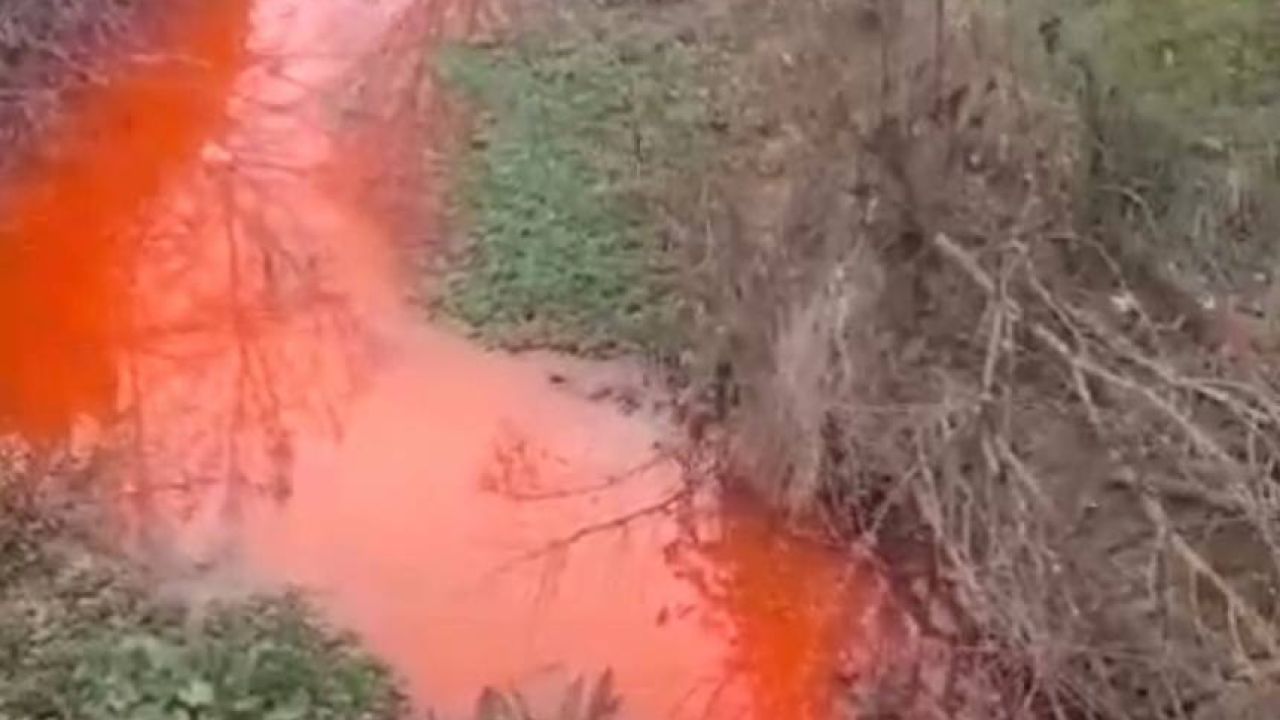 Bursa'da, Nilüfer Çayı'nın kolu olan Demirtaş Deresi, bahçeler arasında akarken kimyasal atıklar nedeniyle turuncuya döndü.