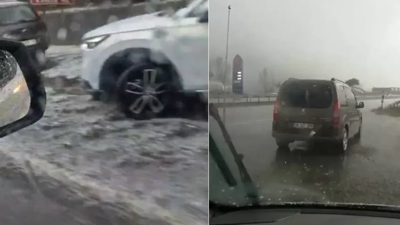 Yoğun yağış nedeniyle araçlar ilerlemekte güçlük çekerken, bazı sürücüler güvenli bir noktaya çekerek yağışın dinmesini bekledi. Bölgedeki trafik akışında kısa süreli aksamalar yaşanırken, dolunun etkisini yitirmesiyle sürücüler yollarına devam etti.