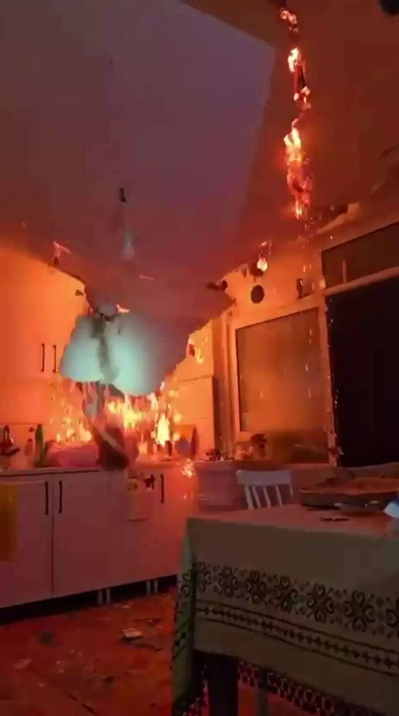 Bursa'nın Osmangazi ilçesinde çıkan yangında, çöken tavanı son anda fark eden itfaiye ekipleri, faciadan döndü. O anlar kameraya anbean yansıdı. Görüntüler zamanla yarışan ve ölümü göze alan itfaiyecilerin tedbirli davranmasının önemini bir kez daha gözler önüne serdi.