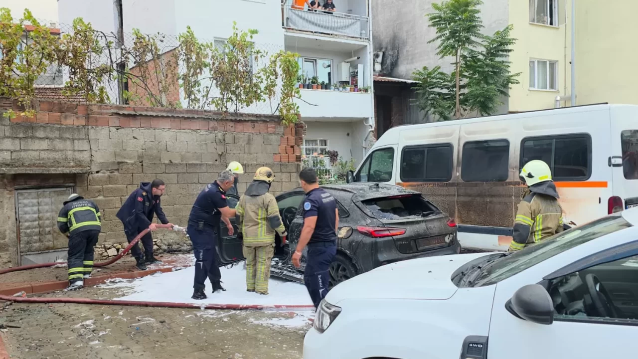 Bursa'nın İnegöl ilçesinde otoparkta bir otomobilde çıkıp büyüyen yangında 3 araç hasar gördü.