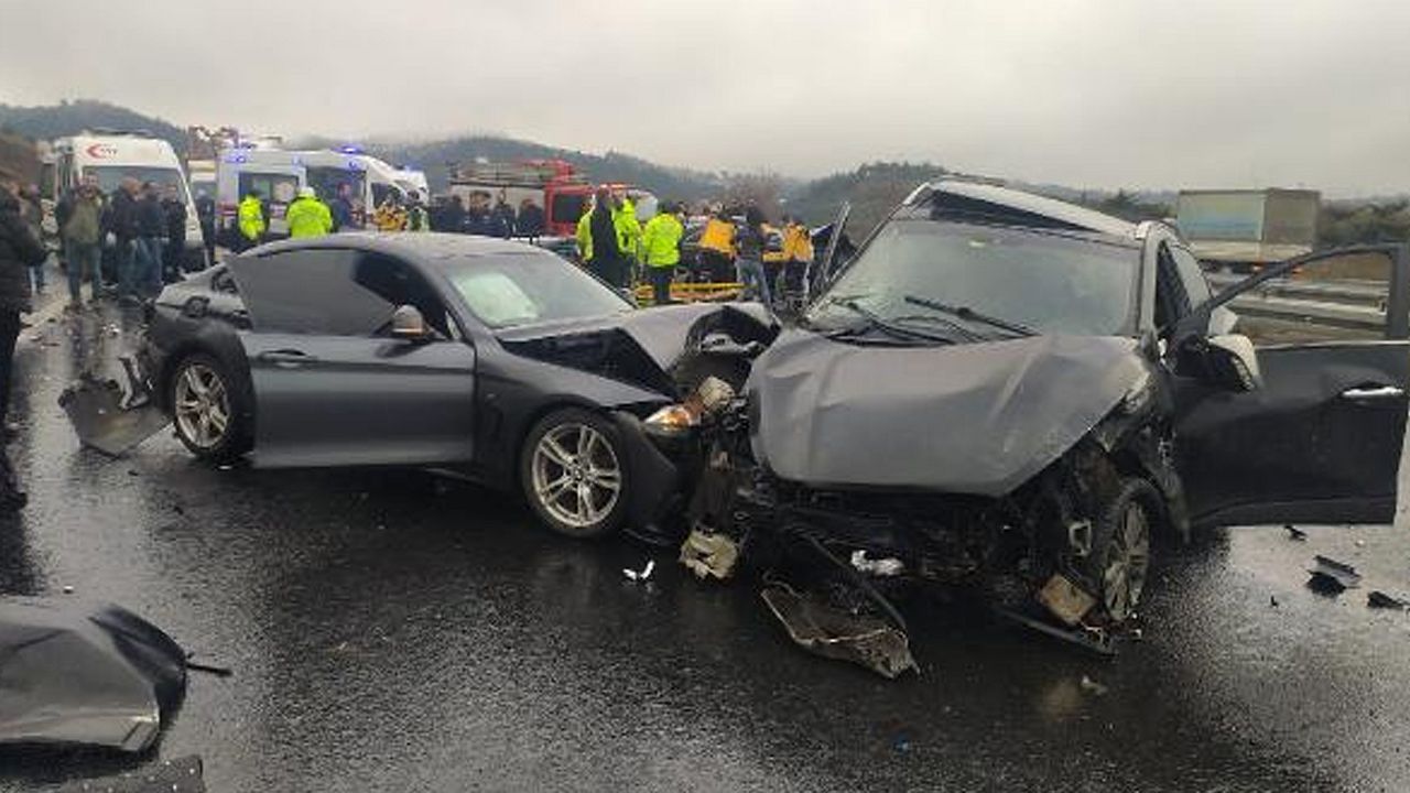 Bursa'dan İstanbul istikametine giden 4 otomobil, yağış nedeniyle kayganlaşan yolda sürücülerinin direksiyon kontrolünü kaybetmesi ile birbirine çarptı.