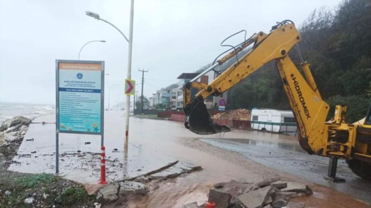 Bursa'da sağanak nedeniyle deniz taştı: Sahil su altında kaldı