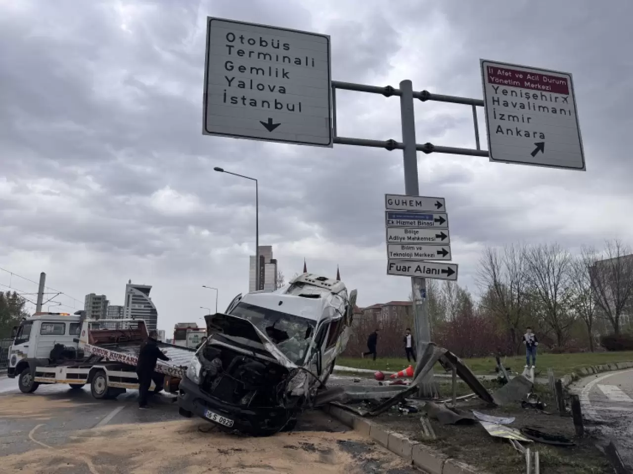 Merkez Osmangazi İlçesi İstanbul Caddesi üzerinde Muharrem B. idaresindeki servis minibüsü sürücüsünün direksiyon hakimiyetini kaybetmesi sonucu önce bariyere, daha sonra yön belirleme levhası direğine çarpıp devrildi.