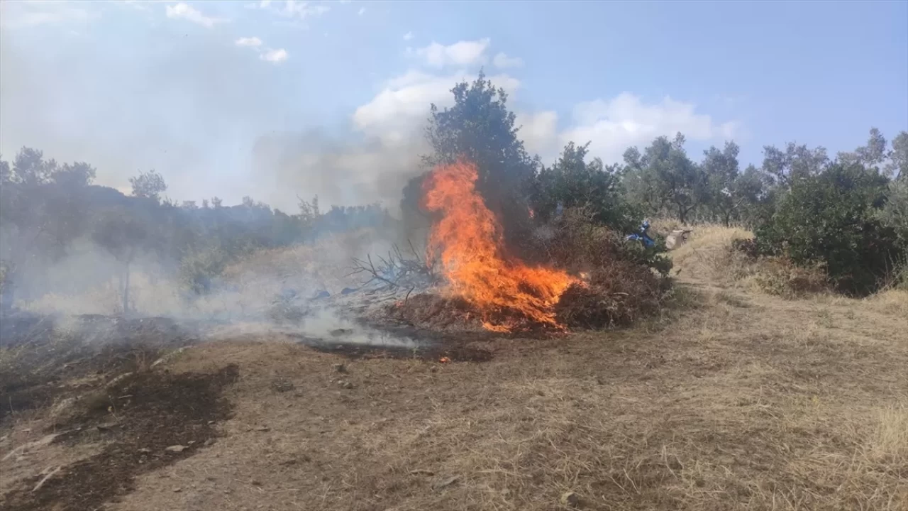 İlçeye bağlı Kurşunlu Mahallesi'ndeki zeytinlik alanda henüz belirlenemeyen nedenle yangın çıktı.
