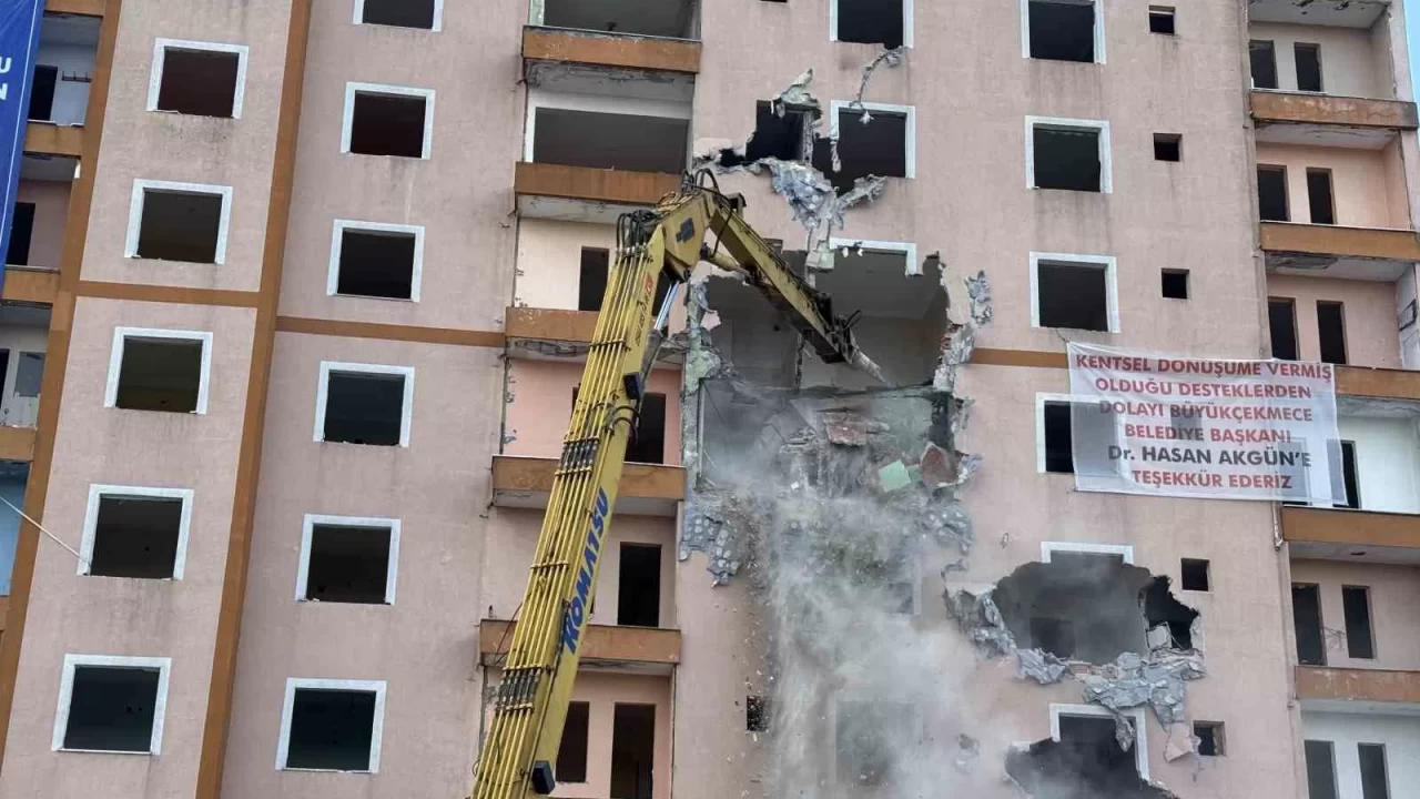 Büyükçekmece Belediye Başkanı Hasan Akgün, basın mensuplarına yaptığı açıklamada, ilçede ilk kez 4 ve 5 katın üzerindeki riskli binaları yıktıklarını, çalışmaların devam edeceğini söyledi.