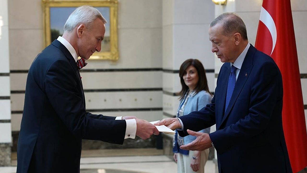 Cumhurbaşkanlığı Külliyesi'ndeki kabulde, Büyükelçi Reinart, Erdoğan'a güven mektubu sundu.