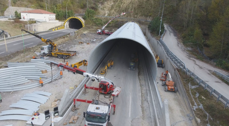 Bakan Uraloğlu, otoyolun Ankara istikametinde erişim sağlayan platformda, tünel portalı çelik konstrüksiyon olarak Ankara yönü tünel girişinin 90 metre uzatılarak, tünelin toplam uzunluğunun 3 bin 25 metreden 3 bin 115 metreye çıkartıldığına işaret etti.