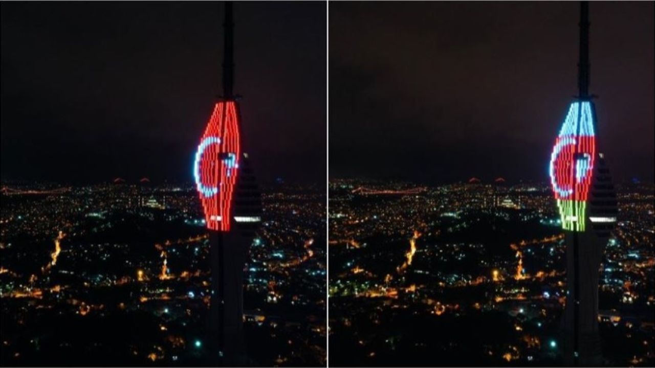 Avrupa'nın en yüksek televizyon ve radyo kulesi olan 369 metre uzunluğundaki Küçük Çamlıca Radyo ve Televizyon Kulesi'nin dış cephesine Türkiye ve Azerbaycan bayrakları yansıtıldı.